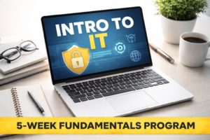 A live, 5-week IT Fundamentals cohort that teaches you job-ready IT skills — plus resume review, job hunting strategy, and interview prep — so you can get hired and succeed in your first IT role.